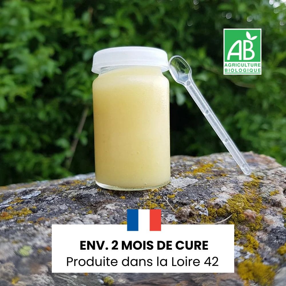 Notre gelée royale est issue d’une production locale maîtrisée, sans transformation ni congélation, garantissant une traçabilité complète et le respect du travail des abeilles. Chaque pot de 25 g est conditionné sous atmosphère contrôlée et expédié en boîte isotherme pour préserver sa fraîcheur et toutes ses vertus naturelles.